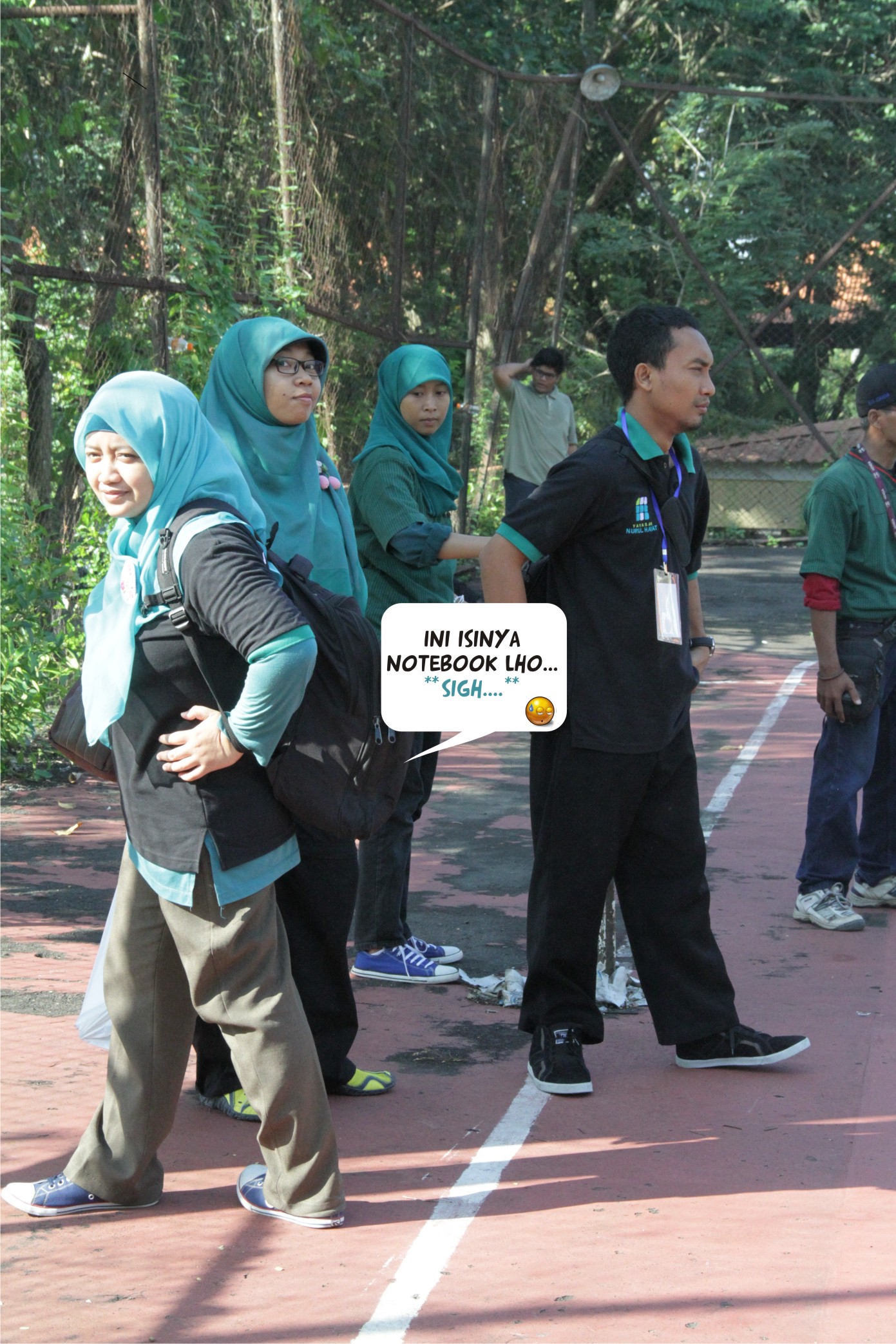 Ya kalo laptopnya enteng sih kagak masalah. Lah ini, udah badan gue membal-membal gak karuan, kudu nggendong laptop SEHARIAN! *sigh*
