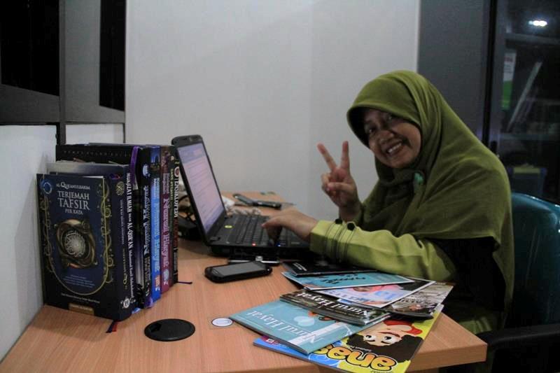 “Sekarang Ibuku jarang bawa laptop. Soalnya, laptop kantor berat banget. Punggungnya sering capek. Kalau malam aku sering disuruh pijetin.” *lah, malah curcol.