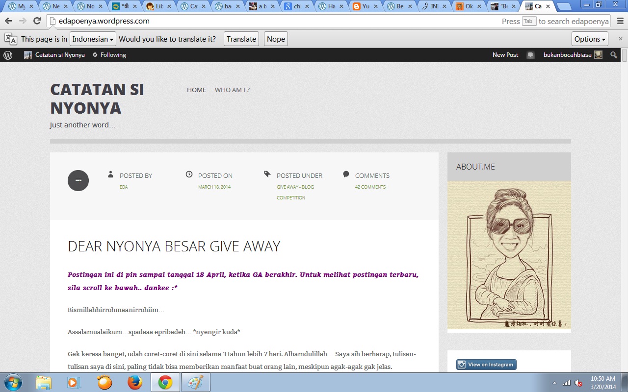Postingan di blog dia juga cihuy. Eh, sekarang jeung Eda lagi bikin GiveAway. Kalo mau ikutan, langsung nimbrung aja ke sono.