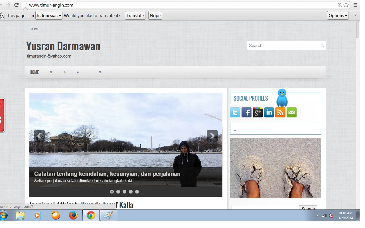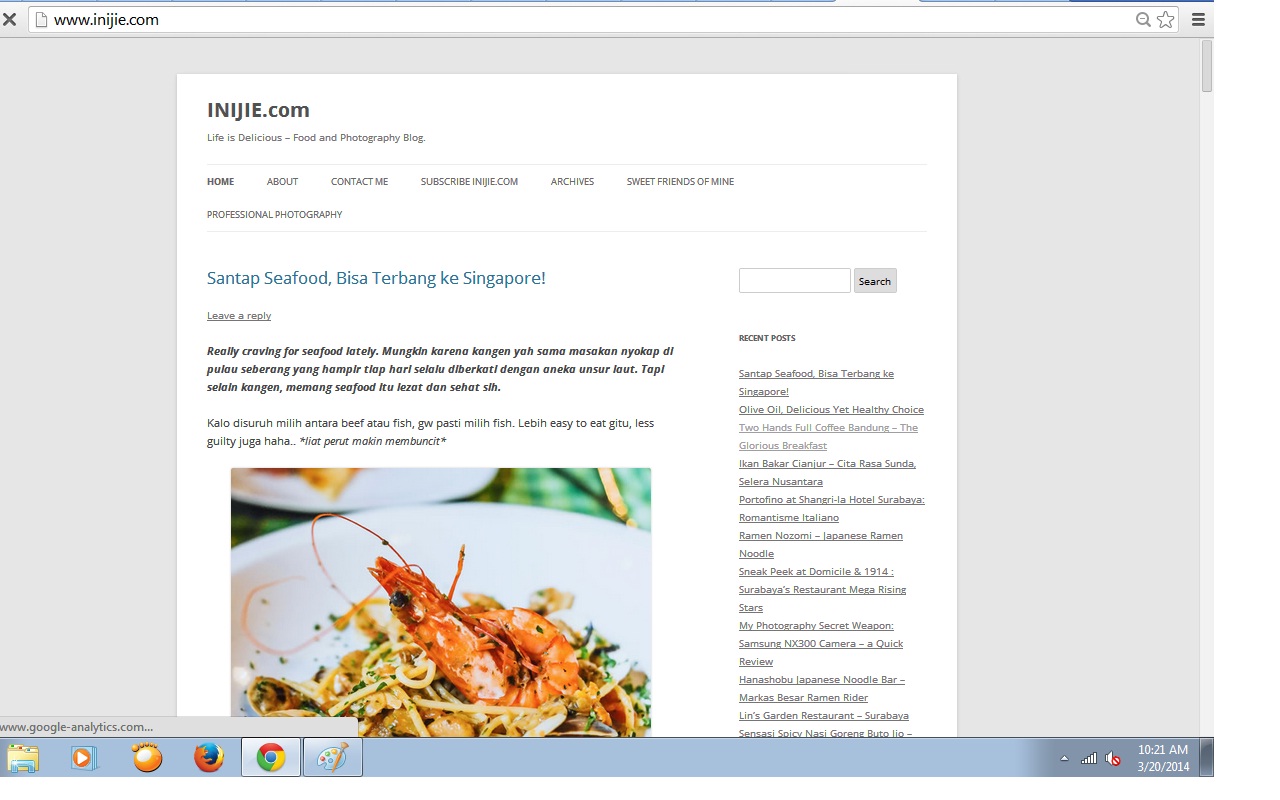 Duh, makhluk mana di galaksi ini yang ga doyan lihat blog kuliner sih? Tapi, dari segambreng blog kuliner, nggak tahu kenapa, aku favorit banget sama: http://www.inijie.com/. Blognya bersih. Simple. Gak berlebihan. Tapi, informatif. Gaya nulisnya itu loh, seolah-olah menunjukkan bahwa seorang Jiwa Vieri ini koko-koko yang wise, baik, santun, walo kadang agak korslet dan slebor. Percayalah, you’ll gonna love the way he writes! Syahdu. Kalem. Dan selalu bikin kangen.