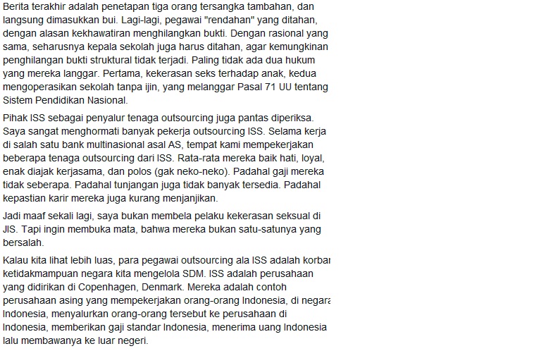Ada perspektif luar biasa yang disajikan teman saja, Amak Yaqoub. Sebagai dosen Unair, tentu ia punya pola pikir dan sudut pandang tajam terhadap kasus pelecehan seksual di JIS, yang belakangan ini menjadi trending topic.