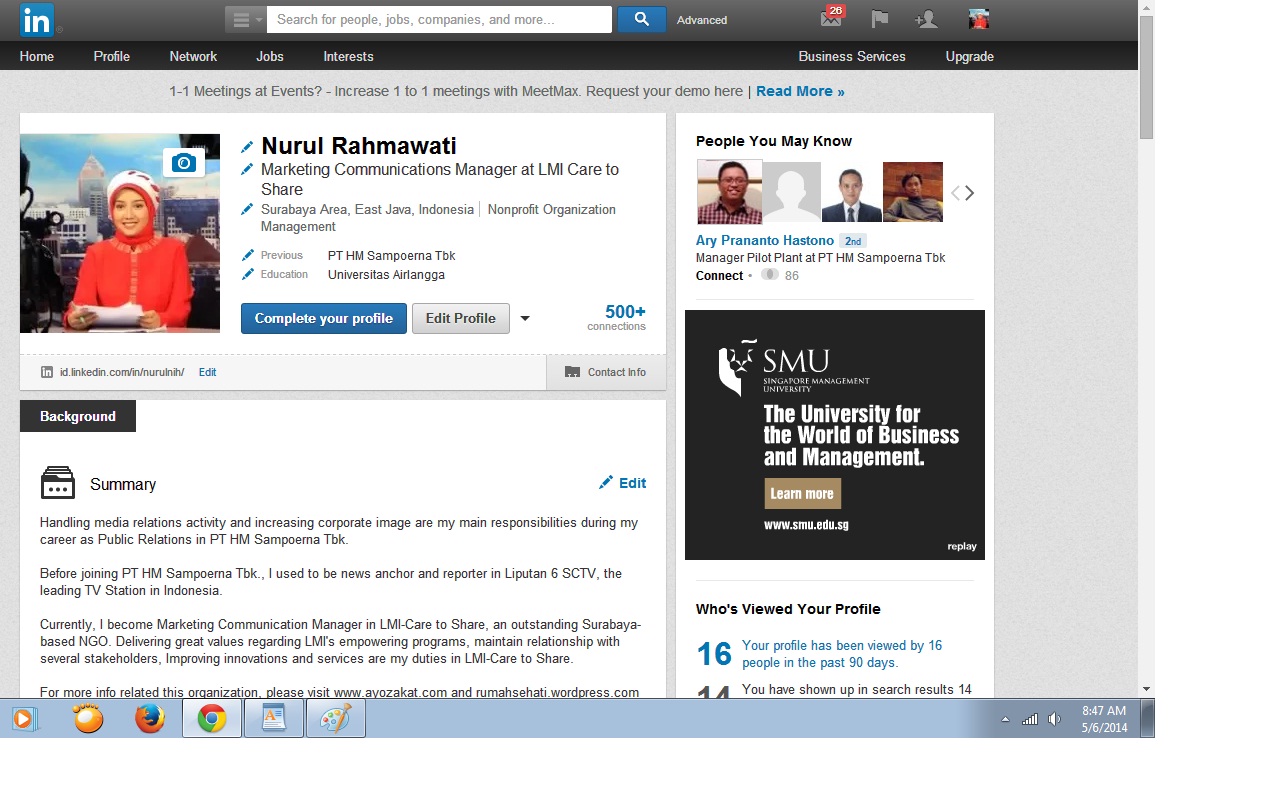 saya ga punya akun di linkedin mbak, soale ngerasa kurang profesional,