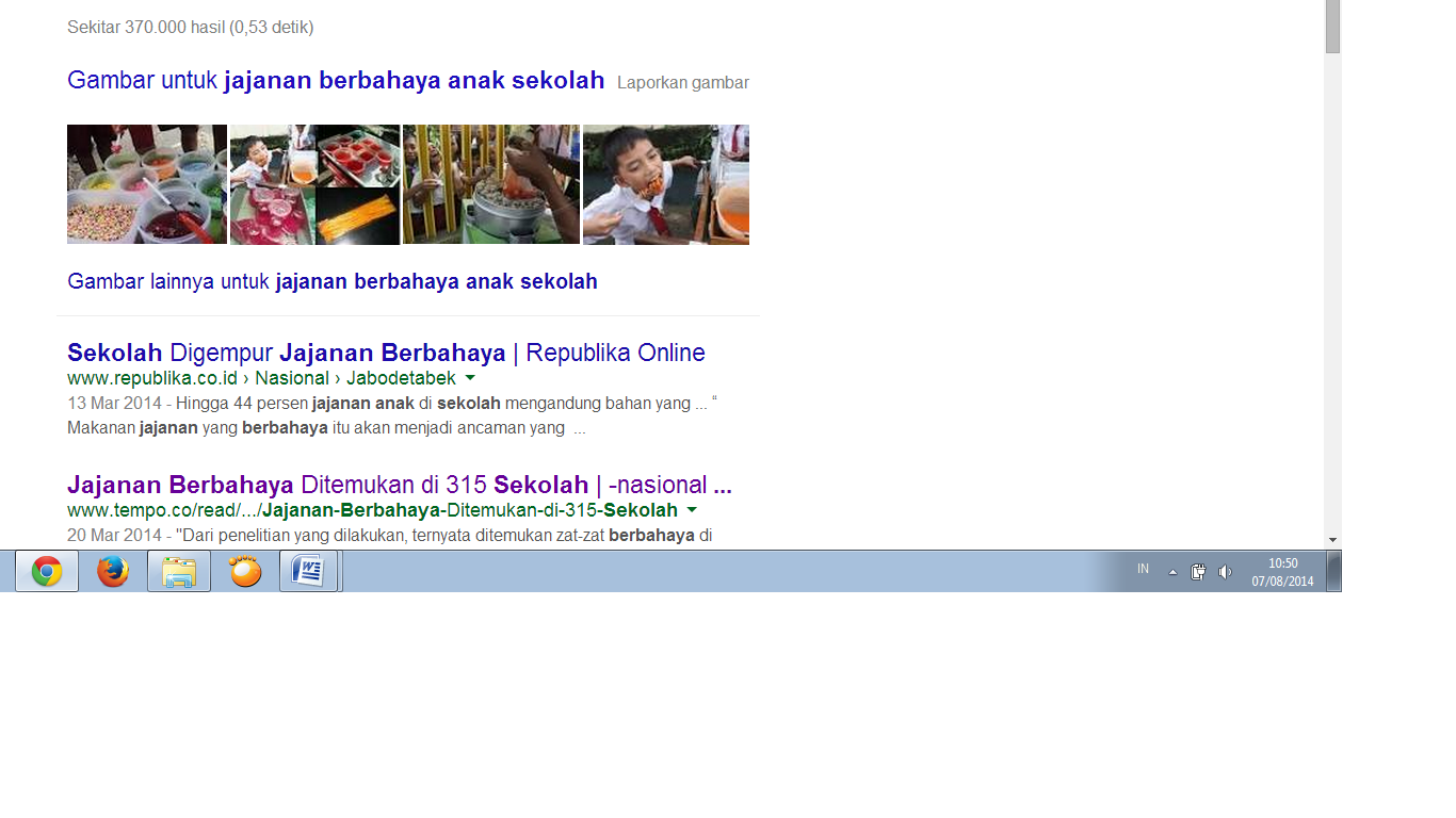Coba kita googling dengan keyword “Jajanan Berbahaya Anak Sekolah”. Ada 370 ribu artikel maupun foto yang mengulas soal jajanan ini.