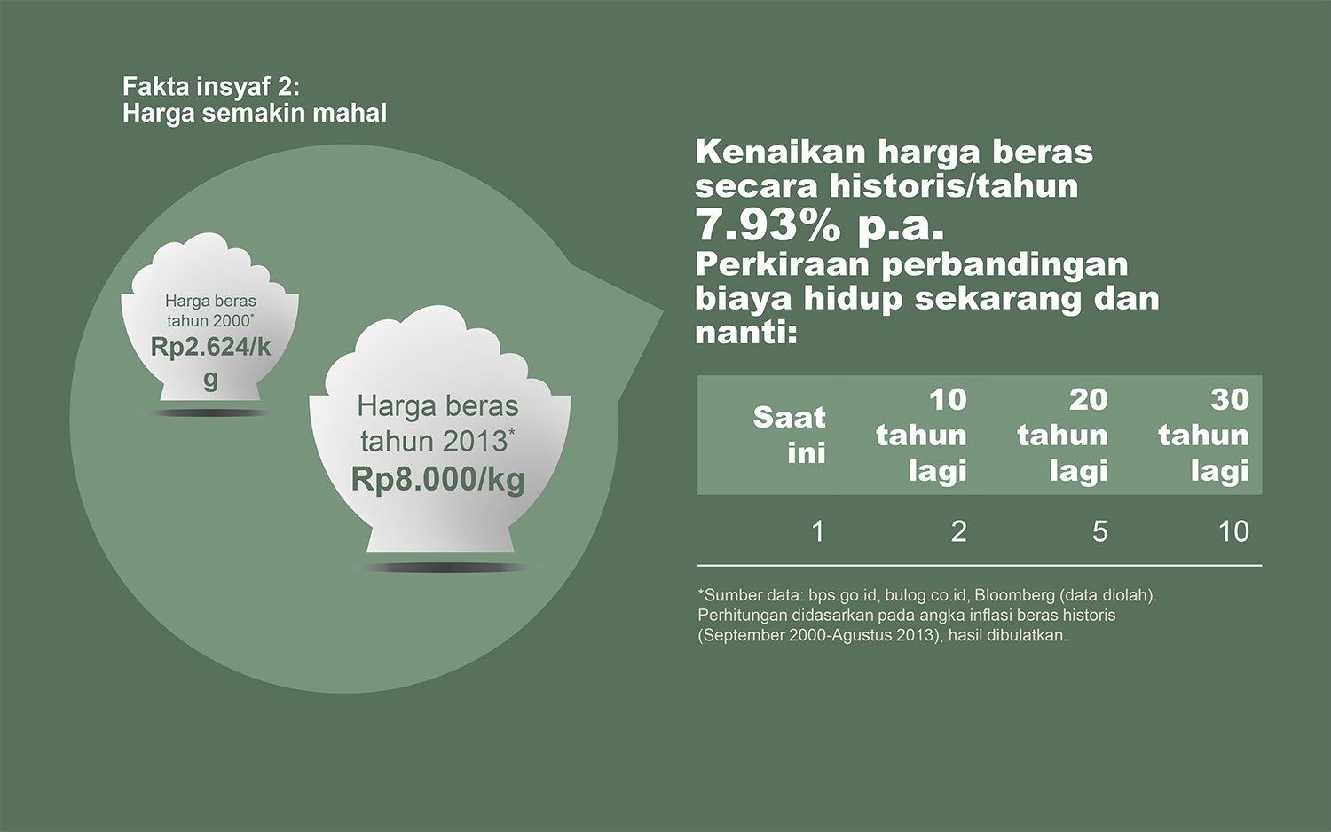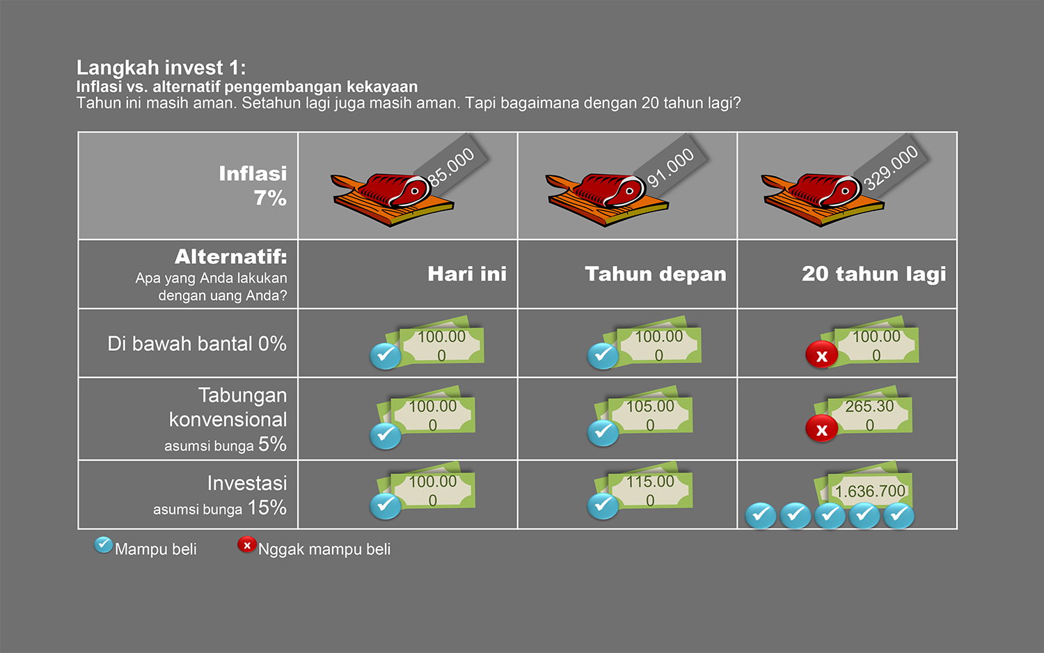 Tingkat inflasi sungguh mengerikan! Duit sebanyak apapun yang kita punya, kalau sekedar disimpan di bawah bantal, maka 10 atau 20 tahun lagi, duit itu sama sekali nggak ada nilainya. Hiks.