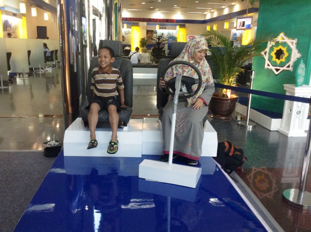 Maksudnya? Gini. Kita “naik mobil” yang belum komplet. Trus dari video LCD TV yang ada di depan kita, jeng.. jeng… Bodi mobil menutup sempurna! Mengalunlah musik yang sooo easy listening, kita bisa pose-pose kekinian gitu, daaan…. siyaaap… pose yang tsakep yaaak… kliiik!!