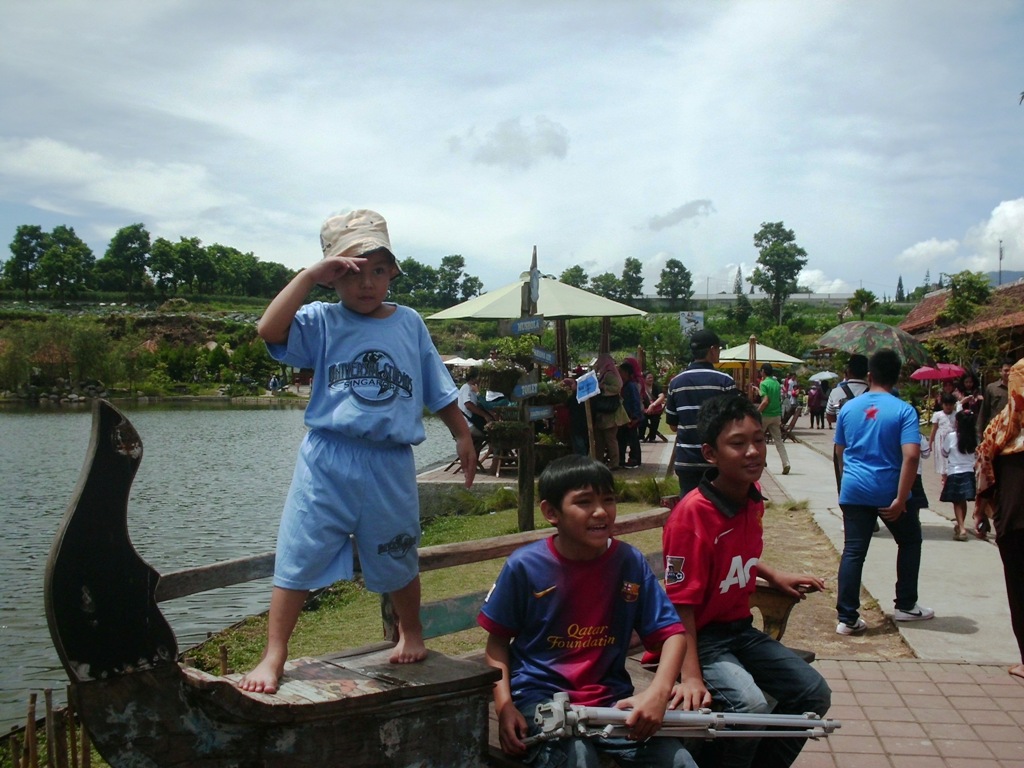 Faiz (bertopi) bareng para sepupu di Floating Market Lembang