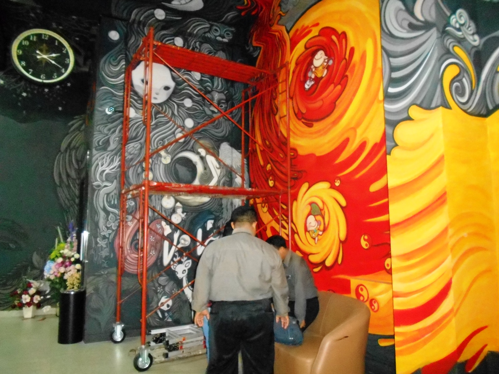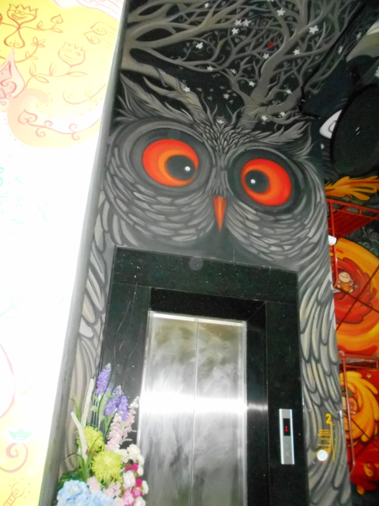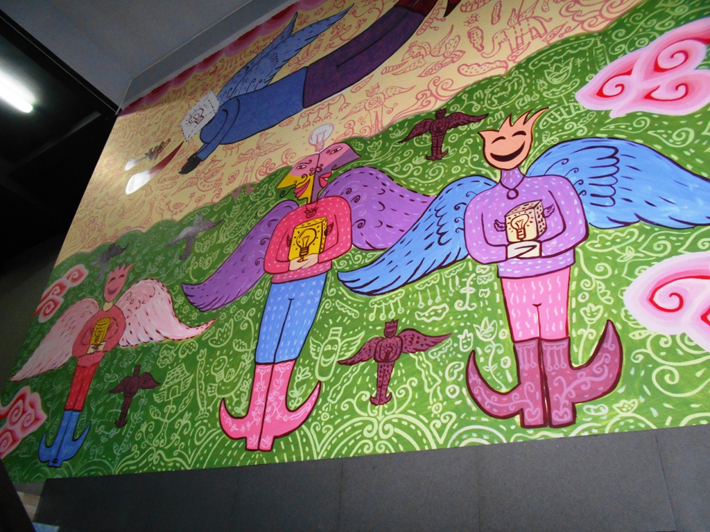 btw, foto pertama yang dasar kuning, ada gambar separo wajah pojok kanan bawah, mengingatkanku akan mural di kantor IFI yang lama (dulu CCCL ).