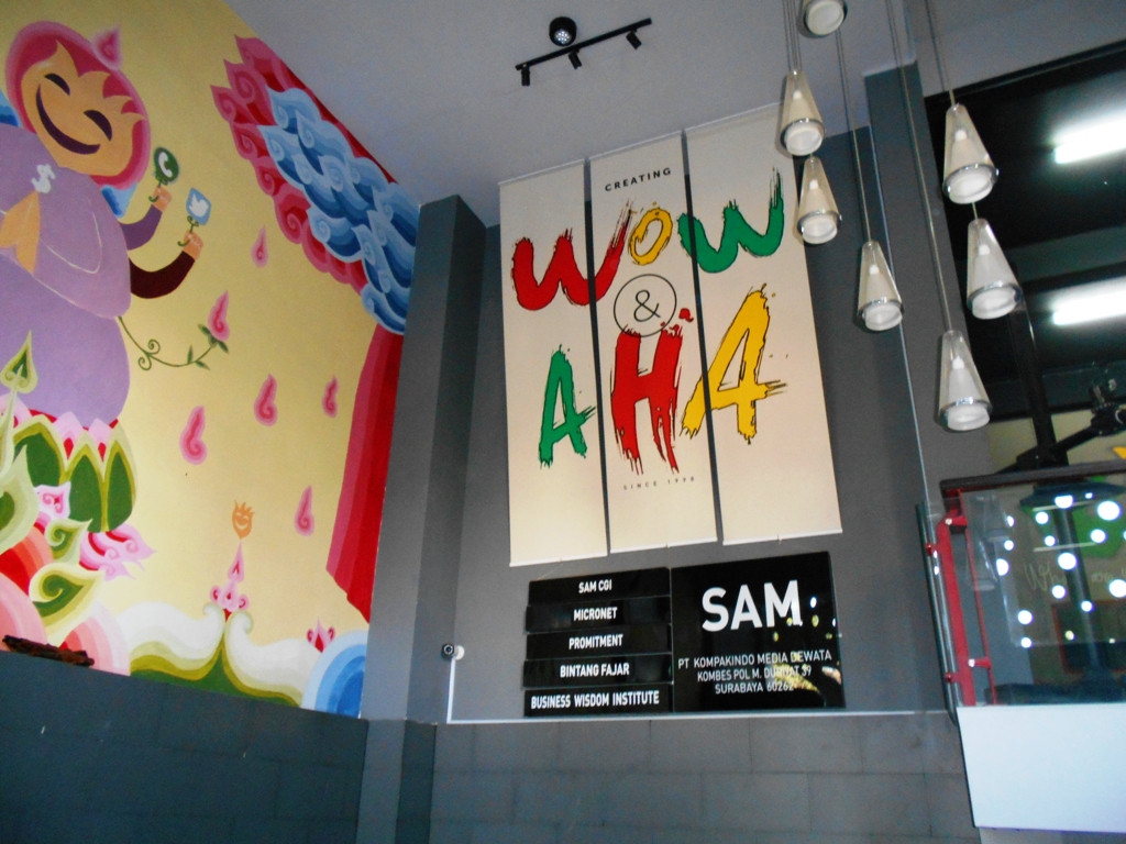 8. Hai mbak. I’m part of Sam Design tapi yg cabang Jekardahh…..hi3. Yg di Jkt sama pake mural beginian juga cuma ga sebanyak di kantor surabaya, karena keterbatasan lahan. Mural2 ini memang dikerjakan oleh ilustrator ciamik, “aset negaranya” Sam Design (pasti udh kenalan dong ya sama orgnya pas ngeliput ini). Kalo yg mural Jkt dikerjakannya oleh ilustrator yg sama plus 1 org ilustrator yg memang karyawan Jakarta. Thanks untuk artikelnya ya