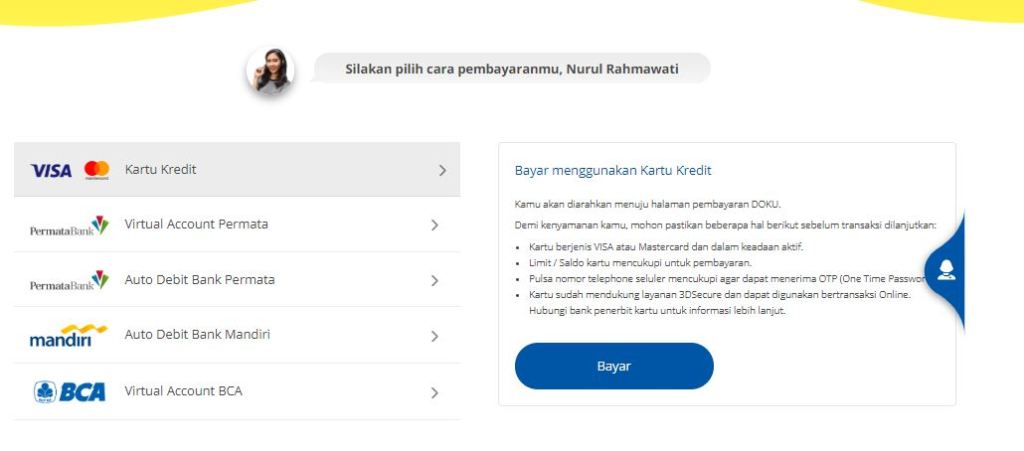 Sementara Kartu Kredit yang dapat kamu gunakan untuk pembayaran adalah kartu kredit dari bank manapun selama kartu kredit tersebut berjenis Visa atau Mastercard.