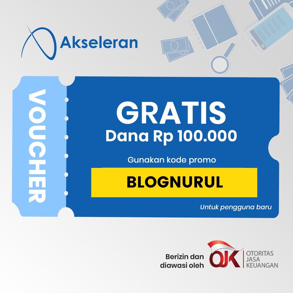 Yuk! Gunakan kode promo BLOGNURUL saat mendaftar untuk memulai pengembangan dana awalmu bersama Akseleran. Untuk syarat dan ketentuan dapat menghubungi (021) 5091-6006 atau email ke cs@akseleran.co.id.