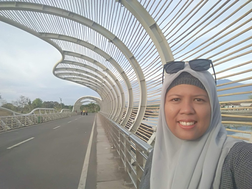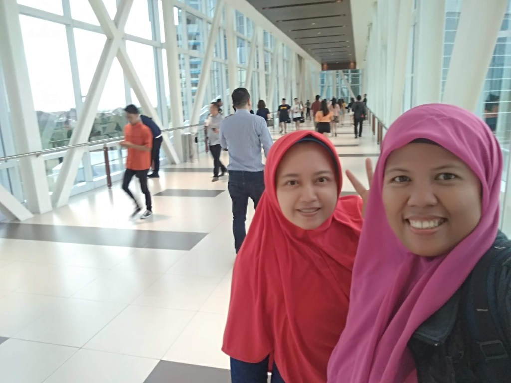 Nurul Rahma (jilbab merah) dan Diane Suryaman di connecting bridge