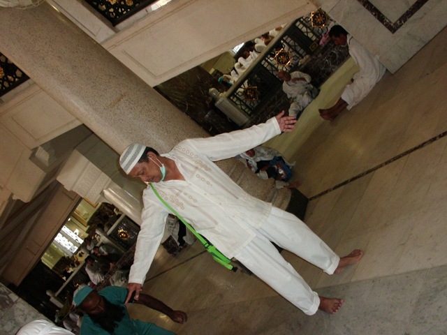 Biasanya, kalau ada orang muntah, kita pasti cenderung menghindar karena jijik. Tidak begitu dengan omku. Meski stamina tubuhnya kembang kempis, om Ruslan malah terpanggil untuk berbuat sesuatu. Minimal, menghindarkan bertebarnya najis di penjuru Masjidil Haram.