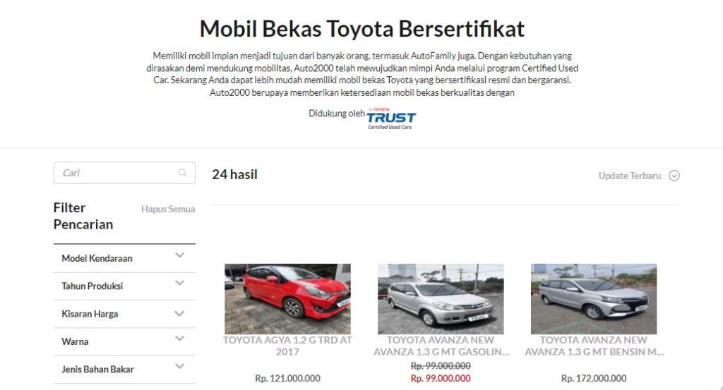 Adek sepupu saya ini background kuliahnya di salah satu kampus Teknik ternama di Surabaya. Nggak heran, dia super duper teliti dalam hal jual beli produk otomotif. Doi bilang mau mengandalkan Auto2000 aja karena sekarang Auto2000 udah ada fitur jual mobil bekas Toyota yang tentunya bersertifikat.