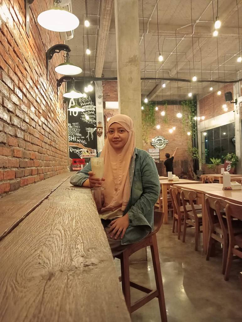 Republika cafe ini konsepnya industrialis gitu ya, adem liatnya
