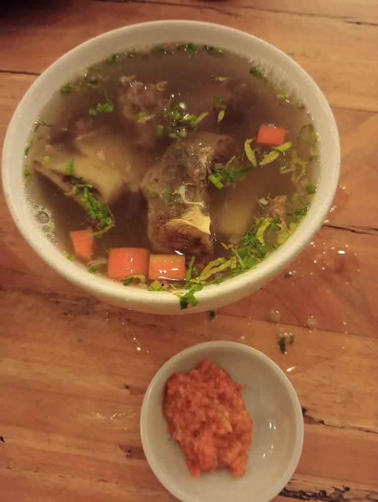 15. Suka sama konsep tempatnya, terus luas juga, apalagi kombinasi wana lampu dan furniturenya. Menarik. Eh pass scrol ke bawah kelihatan Sop. Kayaknya ga kalah menarik sama tempatnya nih. Sop iga salah satu makanan kesukaan