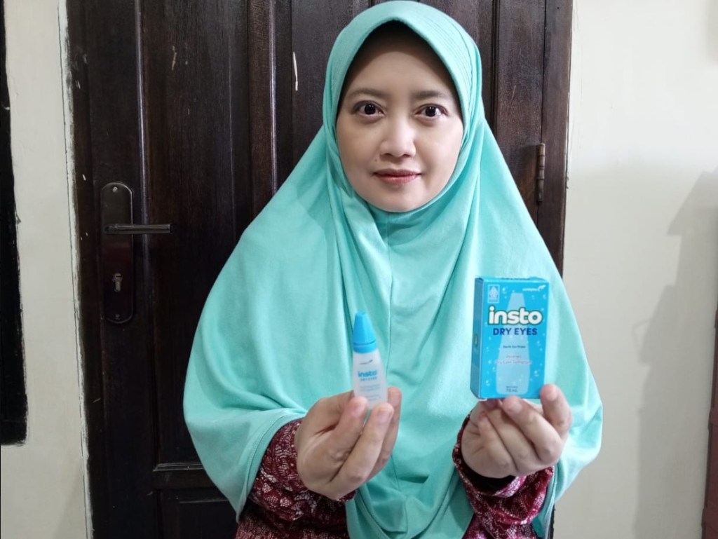 Langkah ini juga sangat membantu meringankan kondisi mata kering. Saya merekomendasikan Insto Dry Eyes yang memang diformulasikan sebagai solusi untuk mengatasi mata kering.