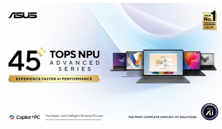 ASUS kembali menunjukkan kepemimpinannya di pasar laptop AI dengan menghadirkan jajaran laptop AI terbaik. Tak hanya menghadirkannya dengan lengkap dan komprehensif, laptop AI terbaik ASUS juga melampaui standar minimum Copilot+ PC dengan kecepatan Neural Processing Unit (NPU) 45+ TOPS.