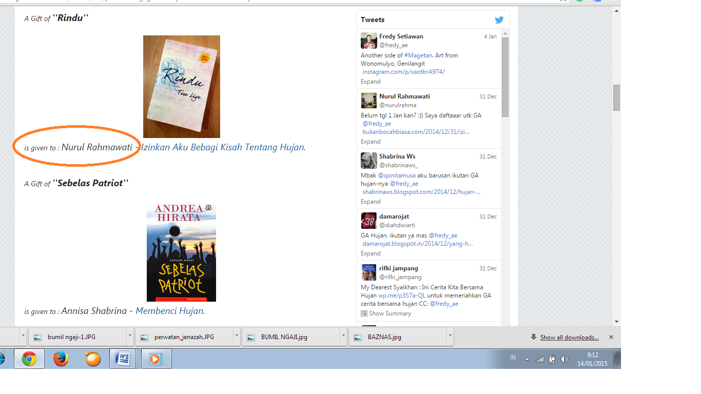 6. Pemenang Give Away (GA) Blogger dengan Dua Status 2014