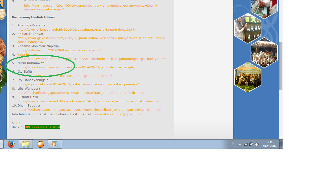 3. Juara Hadiah Hiburan Lomba Blog Jamu IPB